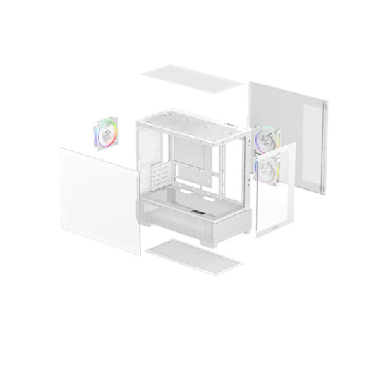 CG380 3F WH je panoramatická Micro-ATX skříň, která kombinuje design a funkčnost v kompaktním provedení. Se třemi předinstalovanými PWM ARGB ventilátory je skvělou volbou pro vytvoření efektní sestavy s spolehlivým prouděním vzduchu.