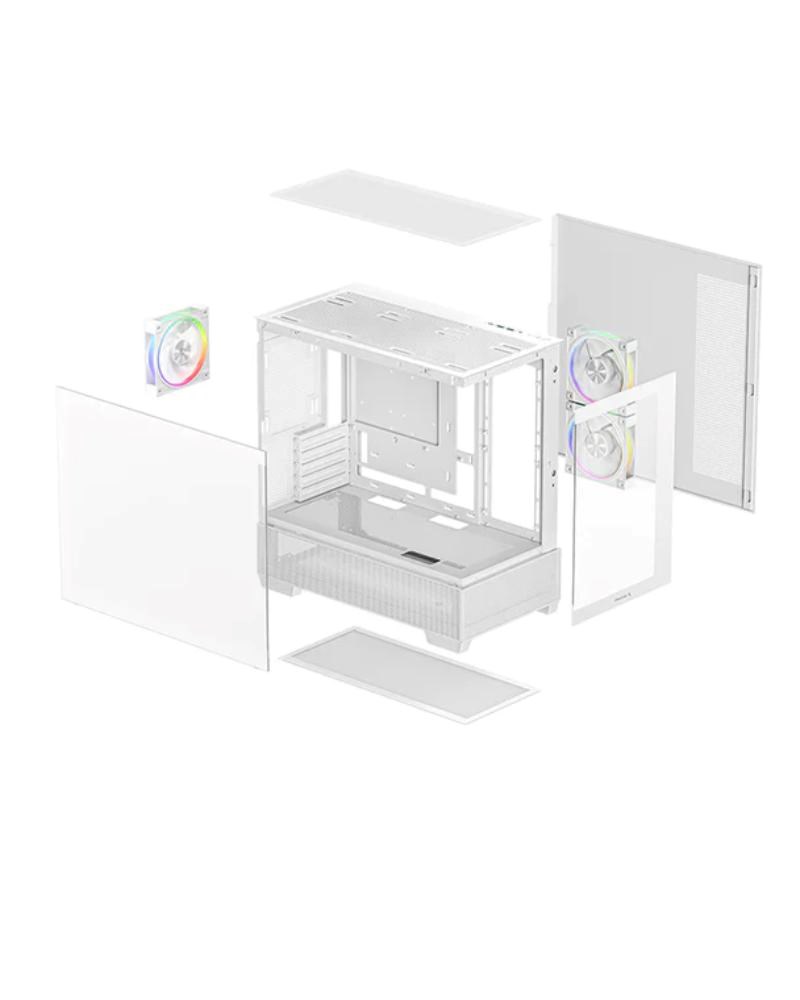 CG380 3F WH je panoramatická Micro-ATX skříň, která kombinuje design a funkčnost v kompaktním provedení. Se třemi předinstalovanými PWM ARGB ventilátory je skvělou volbou pro vytvoření efektní sestavy s spolehlivým prouděním vzduchu.
