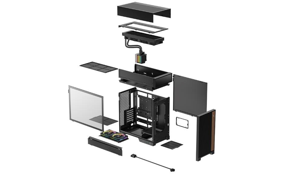 CL6600 přináší nový pohled na design skříní pro éru kapalinového chlazení. Fyzickým oddělením tepelných zón a cest proudění vzduchu zabraňuje hromadění tepla a vzájemnému rušení, kterému se u konvenčních uspořádání nelze vyhnout. Je také vybaven pokročilým 360mm kapalinovým chladičem a dvěma spodními ventilátory ARGB, které zajišťují vysoký výkon a vytvářejí živý interiér.