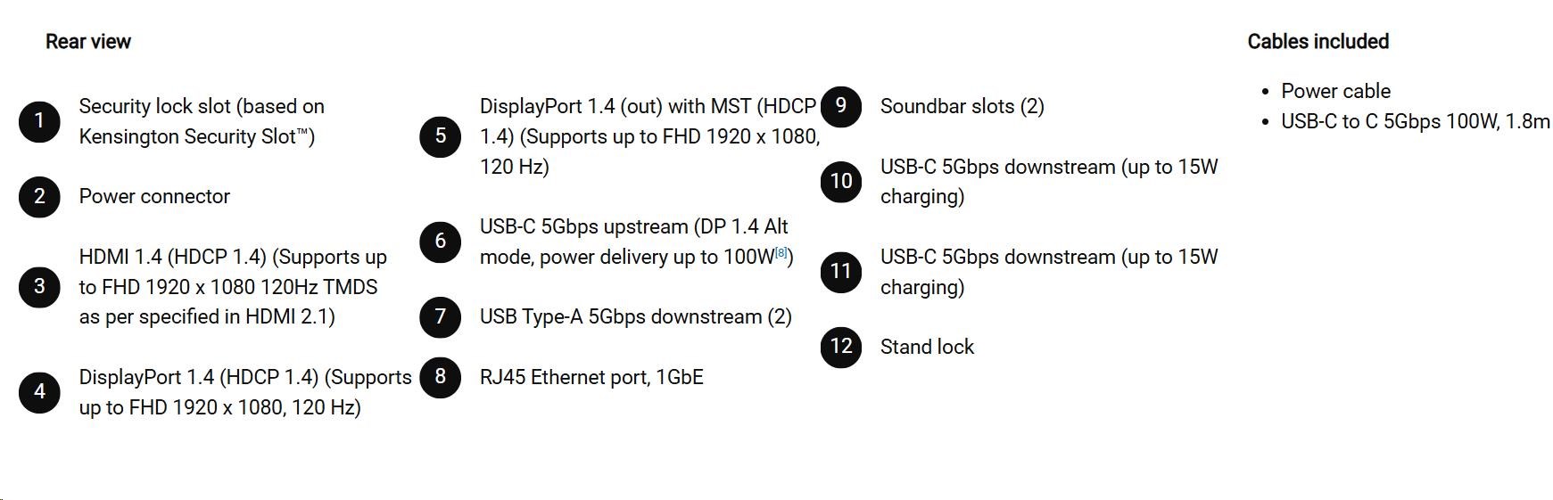 • 1 USB-C 5Gbps upstream port/s (DisplayPort 1.4 Alt Mode, Power Delivery up to 100 W)