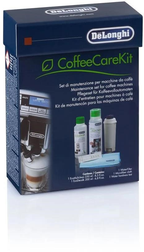 Sada De'Longhi DLSC306 je nezbytná pro udržování kávovaru v perfektním stavu a pro stále stejnou chuť a vůni kávy. Sada od značky De'Longhi je ideální pro čištění espress a kávovarů. Součástí sady DLSC306 je 200 ml přípravku EcoDecalk, který vydrží na 2 odvápnění, čistič Eco MultiClean 250 ml, s ověření tvrdosti vody vám pomůže testovací proužek, případně vám s tvrdostí vody pomůže filtr, který je také součástí. Pro praktické využití je v sadě připojena i utěrka z mikrovlákna.