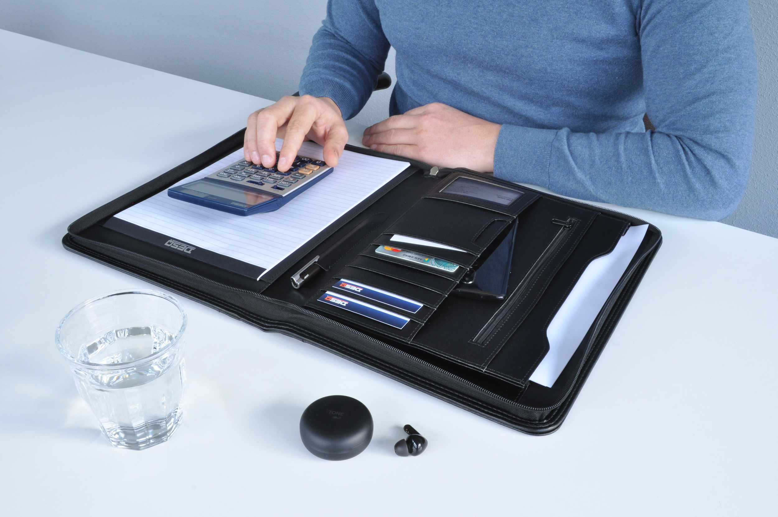 Tato Business Classy konferenční složka je ručně vyrobená z vysoce kvalitní syntetické kůže v minimalistickém designu. ? 13 kapes a přihrádek – ideální pro pera, vizitky a dokumenty ? Speciální kapsa na tablet (lze použít i pro dokumenty formátu A4) ? Uzavíratelná kapsa na zip pro bezpečné uložení cenností ? 8 slotů n... více