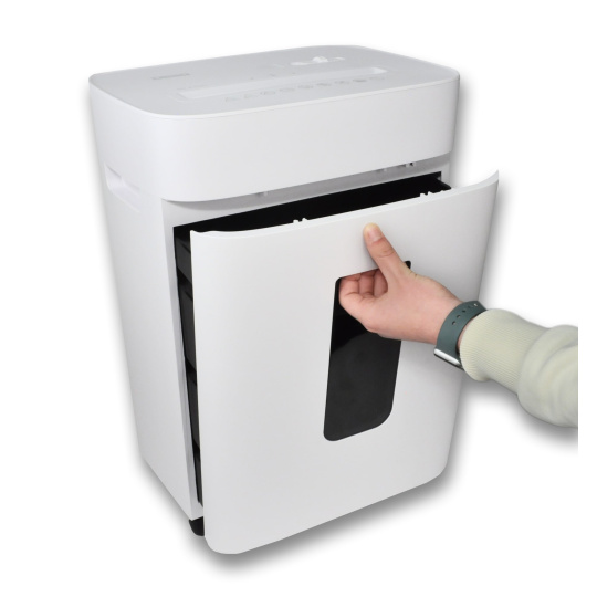 Mikrořezný skartovač určený pro nejvyšší ochranu důvěrných dokumentů s bezpečnostní úrovní P-5. ? Skartuje papír (včetně spon) a platební karty ? Mikrořez (2 × 12 mm) – extra jemná skartace pro maximální bezpečnost ? Bezpečnostní úroveň P-5 – 1 list A4 rozřeže na 2500 částic ? Kapacita až 8 listů (A4, 70 g/m2) na jeden průchod ? 10 minut nepřetržitého provozu – ideální pro kancelářské použití ? Prostorná 20litrová nádoba – pojme až 650 skartovaných listů A4 ? LED indikátor přehřátí a přetížení – ochrana proti přetížení ? Sledovací okénko nádoby – snadná kontrola zaplnění odpadu ? Možnost použití bez odpadního sáčku ? Tichý provoz (<65 dB) – minimalizuje hluk v kanceláři ? Čtyři kolečka – snadné přemisťování Pokročilé funkce: ?? Automatický start-stop a manuální zpětný chod – snadné odstranění zaseknutého papíru ?? Zařízení funguje pouze tehdy, pokud je nádoba správně umístěna – zvýšená bezpečnost ?? Tepelná ochrana – zabraňuje přehřátí skartovače Používejte skartovač doma i v kanceláři, aby se citlivé údaje nedostaly do běžného odpadu..