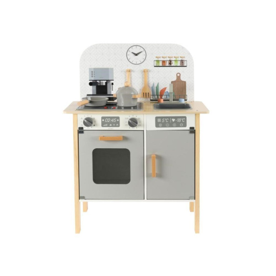 Menší dětská kuchyňka v neutrálních barvách, doplněná o bohaté příslušenství a textilní kuchařský set ZDARMA, promění holčičky i chlapce v opravdové kuchaře. Kuchyňka ve skandinávskému stylu, se spotřebiči a parádními doplňky, je vhodná do každé místnosti. Menší dřevěná kuchyňka je edukativní hračkou, která umožní dětem vyzkoušet si vaření, pečení a další činnosti bezpečným dětským způsobem. Při hře v kuchyňce děti zdokonalí své dovednosti a ještě si užijí spoustu zábavy..