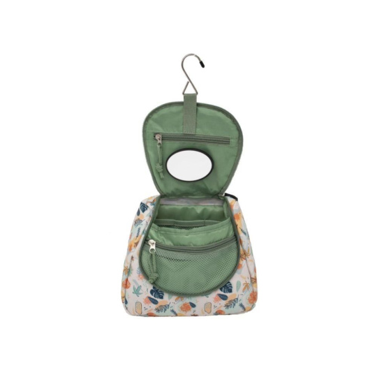 Kosmetická taška na zavěšení, v neutrální zelené barvě, s roztomilým lenochodem, je originální dětskou toaletní taškou na cesty. Velice pevná a odolná kosmetická taška, se spoustou kapsiček a odnímatelným zrcátkem, v pohodě pojme hygienické potřeby vaší holčičky nebo chlapce. Vodoodpudivý materiál umožní dětem používat tašku v koupelně i ve sprše. Díky háčku tašku jednoduše zavěsíte na háček nebo vodovodní baterii a děti mají své toaletní potřeby pohodlně po ruce..