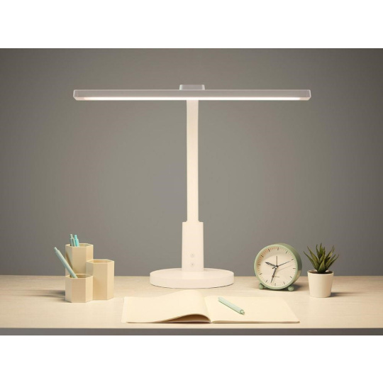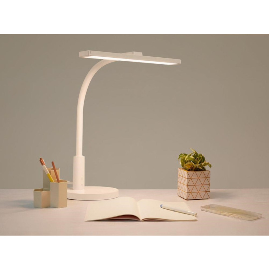 Kvalitní výroba - velká stolní lampa je vyrobená z kvalitního hliník. Univerzální - lampa je svým designem vhodná nejen do dětského pokoje. Používat ji mohou děti i dospěláci, v dětském pokoji i v pracovně. Neutrální barvou je vhodná do každého interiéru. Nastavitelná intenzita světla - nastavitelná do 3 úrovní. Nastavitelná teplota světla - nastavitelná do 3 úrovní 3100, 4300 nebo 6300K. Ohebné rameno - umožní natáčet zdroj světla a tvarovat lampičku dle aktuálních potřeb. Chrání oči - měkké, neoslňující a nastavitelné světlo chrání zrak. Snížené množství kuliček modrého světla. Dlouhá životnost - díky použitým kvalitním materiálům poroste lampa s vašim dítětem. Skvěle mu bude sloužit od 3 let až do 18 let. Nízká spotřeba energie. Měkké rameno. Snadné ovládání. Snadná montáž. Technické parametry: Rozměr: 44,8 x 4 cm. Rozměr základny: 18 cm (průměr). Délka kabelu: 150 cm. Rozměr balení: 50 x 20 x 9 cm. Hmotnost: 1,3 kg. Materiál: hliník, ABS. Světelný zdroj: 72 LED korálků RG0. Maximální výkon: 12 W (72 x 0,2W LED modul). Intenzita osvětlení: 3 úrovně (nastavitelná). Teplota chromatičnosti světla: 3100/4300/6300K (nastavitelná). CRI: Ra?95. Barva: bílá. Certifikáty a normy: CE, RoHS. Doporučený věk: od 3 do cca 18 let. Upozornění: Lampa je určena pouze pro vnitřní použití. Lampu ničím nezakrývejte, nepokládejte na ni ručníky, oblečení atd. Nestříkejte na lampu vodu. Světelný zdroj nenastavujte přímo dopředu nebo nahoru, nedívejte se přímo do světla. Světelný zdroj nelze vyměnit, neotvírejte jeho kryt. Externí ohebný kabel nebo šňůru této lampy nelze vyměnit. Pokud je kabel poškozen, musí být zlikvidována..