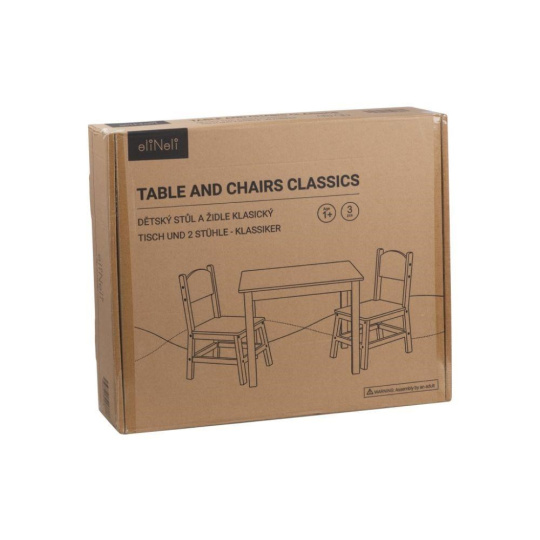 Dětský stolek a 2 židle, v klasickém designu, je krásným a praktickým setem dětského nábytku do dětského pokoje, kuchyně, jídelny i hracího koutku. U stolečku si mohou děti malovat a kreslit, tvořit, prohlížet oblíbené knihy, hrát si nebo si dát svačinku. Dětský stůl a židle v přírodním (natur) provedení je vhodný pro holčičky i kluky, do každého interiéru..