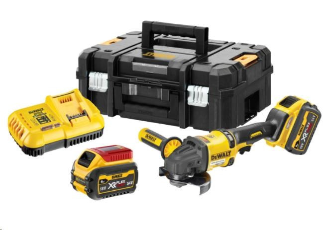 Tato Aku úhlová bruska DEWALT DCG418 se 2 akumulátory 54V 6,0 Ah, je nejvýkonnější z řady FlexVolt. Při použití baterie FlexVolt 9,0 Ah ekvivalent výkonu 2000W brusky. Je dodávána s kufrem Tstak a dvěmi 54V akumulátory. Baterie DeWALT 54Volt FlexVolt poskytuje výkon odpovídající nářadí s napájecím kabelem a volnost pohybu typickou pro Aku nářadí Bruska DCG414 je vybavena systémy elektronické ochrany, jako jsou plynulý rozběh, elektronická spojka a ochrana proti zablokování, které zaručují mimořádně dlouhou životnost převodovky, ochranu proti otěru motoru a ochranu před znečištěním, což značně snižuje šanci na způsobení poruchy Spojí-li se vynikající spolehlivost bezuhlíkového motoru DEWALT a výkonu baterie FlexVolt, je bruska DCG414 zárukou toho, že toto nářadí bude vynikat bez ohledu na jeho namáhání, zatížení nebo prováděnou práci Provozní otáčky 9 000 ot./min (bez zatížení), hodnota momentu vyšší o 75 % a o 1 000 W vyšší výkon než předcházející nejlepší bruska napájená baterií na trhu, to vše poskytuje modelu DCG414 výkon odpovídající nářadí s napájecím kabelem a žádné nevýhody Brzda nářadí se zabírá ihned po uvolnění spouštěcího spínače, což zaručuje u brusného kotouče 125/1,6 mm zastavení za jednu sekundu nebo za kratší dobu a u řezného kotouče 125/1 mm za dobu kratší než jedna sekunda. Elektronická spojka, ochrana proti zpětnému rázu. Bruska DCG414 obsahuje ty nejlepší bezpečnostní prvky, jaké jsou k dispozici, aby splňovala požadavky standardu Perform and Protect Zapuštěný design zámku vřetena umožňuje maximální hloubku řezu a zvýšenou ochranu knoflíku při použití ve stísněných prostorech.