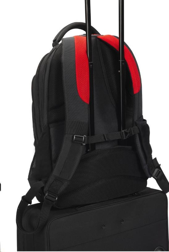 Skrytá kapsa na zadní straně slouží jako bezpečnostní kapsa a poutko na kolečkách