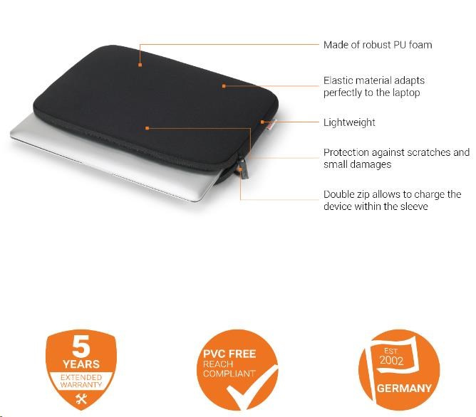 Product Description The Sleeve is made of robust PU foam which perfectly adapts to the form of your notebook like a second skin. The best guaranty against surface scratches and other dents and damages. The design is not only robust, but also extremely light. Your notebook can thus be transported flexibly without taking up a lot of space in your bag. The Sleeve is equipped with two zippers. This allows you to charge your notebook or Ultrabook conveniently, without taking it out of the Sleeve. Another advantage: The zipper is fitted with an extra surface on the inside in order to avoid scratches on the notebook. Made of robust PU foam The elastic material adapts perfectly to the laptop Offers reliable protection against scratches and small damages Double zip allows to charge the device within the sleeve Picture may differ slightly from the original Additional Information Product Dimensions 395 x 280 x 25 mm EAN 7640186417402 Material Jersey fabric with PU foam Colour camel brown Protects your notebook perfectly from scratches and small damages. Art. No. D31975 Weight 0.11 kg Screen size 15 – 15.6” Notebook size ? 385 x 265 x 30 mm; ? 15.6 x 10.43 x 1.18 inches Warranty 5 years extended warranty.