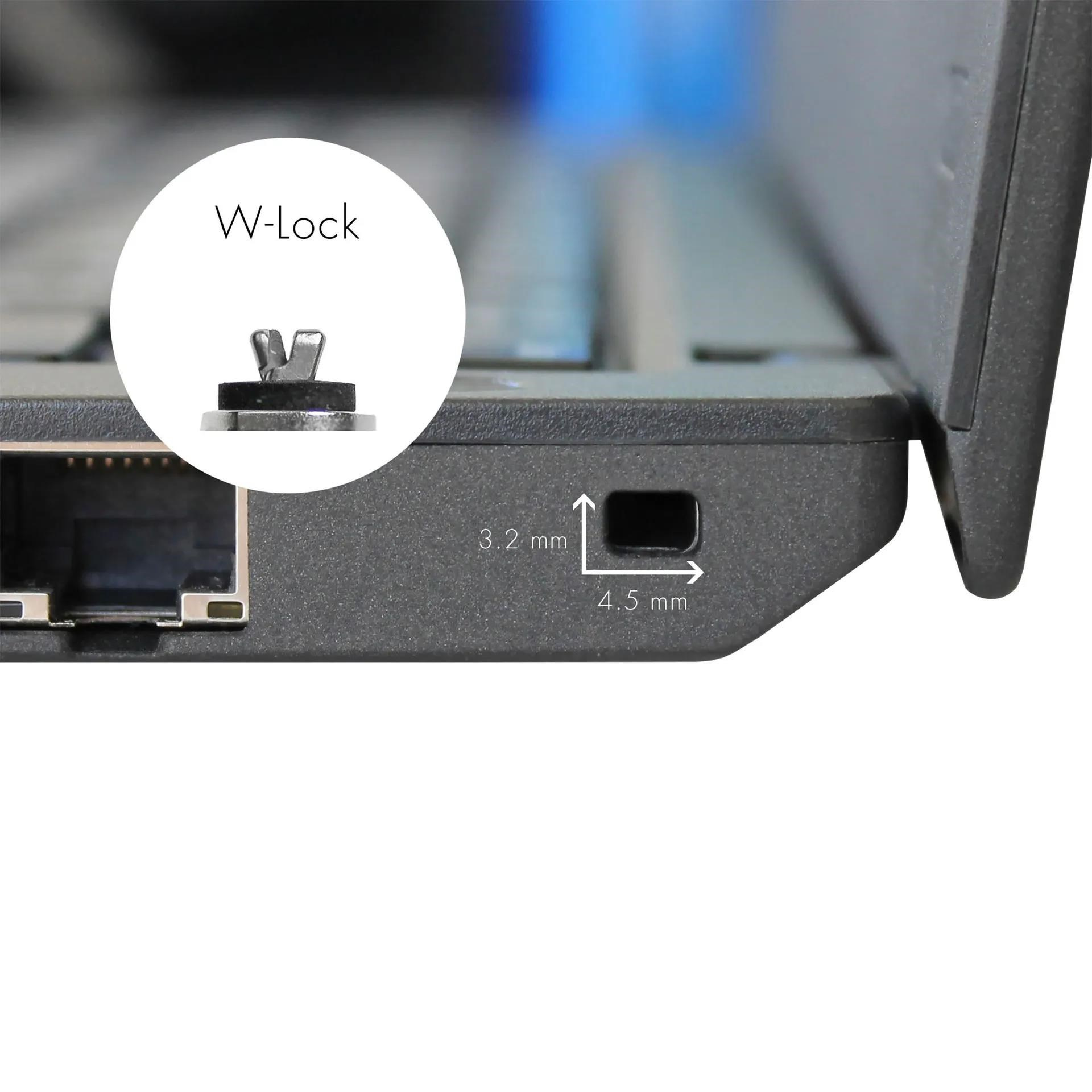 Notebooky jsou stále tenčí a přitom všestrannější. Lehký a obzvláště elegantní ultra tenký bezpečnostní kabelový zámek spolehlivě ochrání vaše zařízení, aniž by mu přidával zbytečný objem. Také projektory, monitory a tiskárny lze účinně zabezpečit pomocí zámkových systémů DICOTA. V současné době používají výrobci zařízení tři různé formáty zámkových slotů. Zámek Security Cable Wedge Lock Ultra Slim je vhodný pro všechny modely se slotem 3,2 x 4,5 mm a je kompatibilní s tenkým bezpečnostním slotem Noble Wedge*. Gumový nárazník zabraňuje poškrábání zařízení a zároveň zajišťuje bezproblémové uchycení. Díky otočné a výkyvné a zavírací hlavě s možností otáčení válce o 360° si užijete maximální flexibilitu při navrhování pracovního místa. Vícežilové ocelové lanko s pláštěm je dlouhé 2 m a má průměr 4,4 mm. Funkční pásek na suchý zip umožňuje srolovat kabel pro kompaktní skladování a přepravu. Součástí dodávky jsou dva klíče. Tento zámek je v samostatném provedení a nelze jej integrovat do většího uzamykacího systému. Nobel Wedge™ je ochranná známka třetí strany bez vazby na společnost DICOTA SCHWEIZ AG.