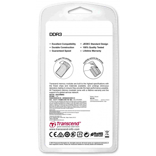 Offering the best combination of reliability, speed and stability, Transcend's DDR3 DIMMs are built with the highest quality brand-name DRAM chips available, and are rigorously tested to ensure they meet Transcend's stringent requirements for overall quality and performance. Transcend DDR3 unbuffered DIMMs are the most stable and reliable in the industry, which also makes them an economical memory solution for all desktops.