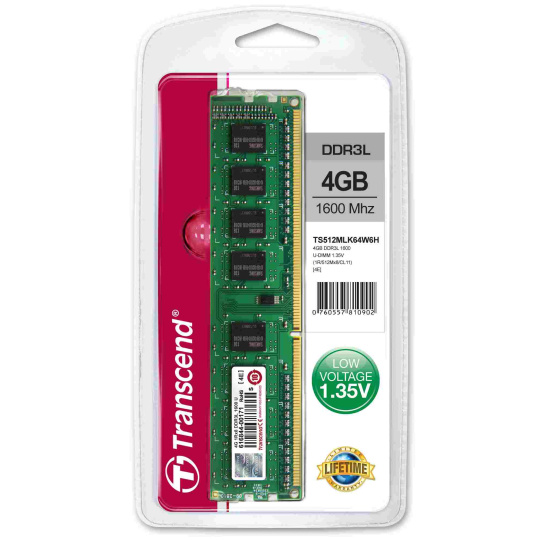 Built to exacting specifications with the finest chips and materials available, Transcend memory modules undergo strenuous laboratory testing to ensure the best performance possible. Transcend DDR3 Low Voltage DIMMs operate at a nominal voltage of just 1.35V, which not only produces less heat, but also reduces electrical load on the memory controller to offer power savings of up to 15% versus standard 1.5V.