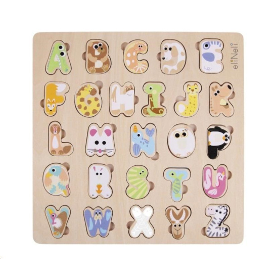Dřevěná abeceda je krásnou hračkou i vzdělávací pomůckou, která by neměla chybět v žádném dětském pokojíčku. Abeceda 3v1 je originální vkládací puzzle se zvířátky, které potrénuje jemnou motoriku a koordinací očí a rukou, zároveň je učební pomůckou pro seznámení dětí s písmenky, abecedou, zvířátky a psaním velkých tiskacích písmen. Každé z písmenek abecedy představuje počáteční písmeno anglického názvu zvířátka a ukrývá pod sebou obrázek s názornou ukázkou, jak se dané písmenko píše. Pro snadné vyjmutí písmenek (zvířátek) z dřevěné desky, je u každého z písmen malý otvor, který tak akorát velký pro malé dětské prstíky.