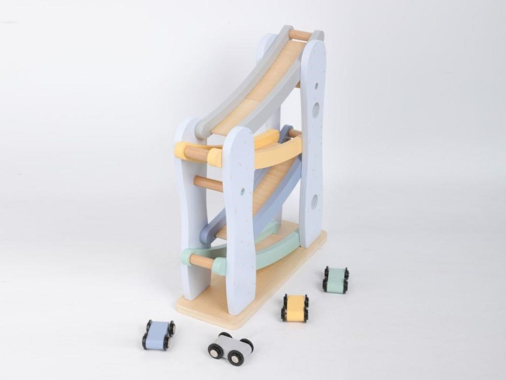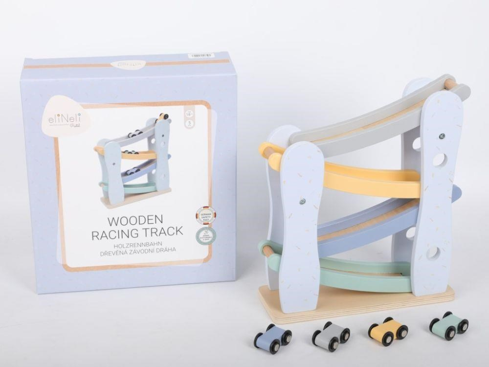 Dřevěná závodní dráha (autodráha) v krásných pastelových barvách, se 4 barevnými autíčky, probudí duši závodníka v každém dítku a nejspíš i v rodičích. Uspořádání závodů se závodními auty přímo v dětském pokoji je zábavnou hrou pro celou rodinu. Rozhodující při této hře je správná koordinace, přesnost, chvíle soustředění, zkrátka správně umístit závodničku na vrchol závodní dráhy..
