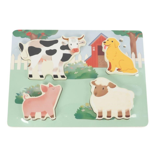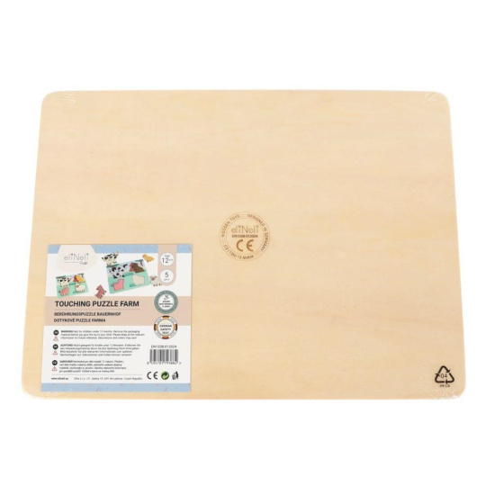 Originální dřevěné vkládací puzzle zavede děti na farmu, seznámí je se zvířátky, která mohou znát ze svého okolí i jejich kožíškem. Zvířátka v jejich skutečné podobě dodávají hře spolu s různými texturami realistický nádech. Děti při hře s puzzle zdokonalují motorické dovednosti, koordinaci očí a rukou, stimulují smysly a učí se poznávat zvířátka z farmy..