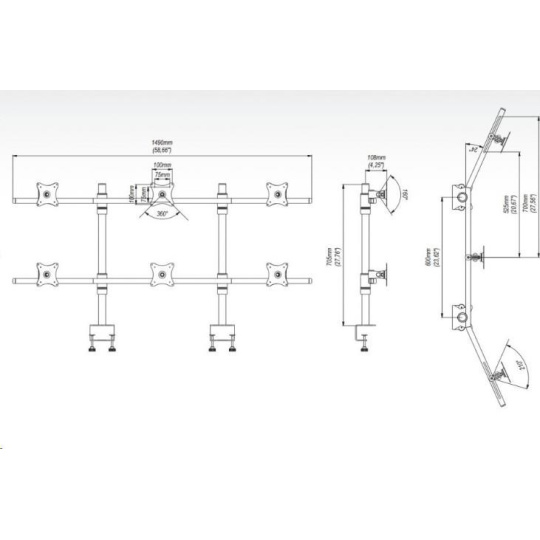 Technické údaje: nosnost 60kg na monitory s úhlopříčkou 13" až 27" VESA norma 75x75mm a 100x100mm - uchycení u 99% monitorů nastavení vzdálenosti monitorů od středního nastavení sklonu +/- 80st. funkce pivot - nastavení monitoru vodorovně, svisle nebo pod úhlem uchycení na stůl ve dvou bodech atest kvality a funkčnosti TUV velmi snadná a rychlá montáž barva stříbrná nebo černá záruka 10 let.
