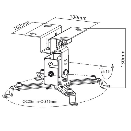 Stropní držák na projektory, univerzální, vzdálenost od stropu 130mm, naklápění +/-15°, stříbrný, nosnost 20kg.... více
