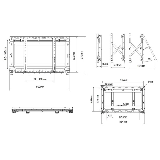 Technické údaje: maximální zatížení 60kg na televizory a monitory s úhlopříčkou 40" až 65" VESA standart 100x100 až 600x400 nezávislé zavěšení každé obrazovky 8-polohové nastavení každé z obrazovek bez použití nářadí zasouvací mechanismus pro pohodlný přístup k obrazovkám možnost uzamčení zatahovacího mechanismu otevřená konstrukce držáku umožní snadný přístup k zapojení obrazovek profesionální konstrukce držáku eliminuje nutnost výpočtů pro realizaci montáže pružinový systém pro nastavení požadované tuhosti - v případě zavěšení obrazovek různých hmotností nejvyšší kvalita, špičkový nezávislý systém zavěšení barva černá záruka 5 let Držák pro sestavu videostěny EDBAK VWPOP85-L podporuje VESA standardy: VESA 100x100 VESA 200x100 a 100x200 VESA 200x200 VESA 300x200 a 200x300 VESA 300x300 VESA 400x200 a 200x400 VESA 400x300 a 300x400 VESA 400x400 VESA 600x400.