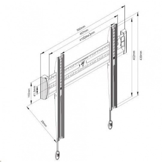 Fixní držák na LCD LED a plazmové Tv 32-55", vzdálenost od zdi 30mm, nosnost 45kg Televizní držák vynikající kvality, navíc za naprosto bezkonkurenční cenu. Pevný držák na LCD LED a plazmové televize, které mají úhlopříčku 32" až 55" a jejichž hmotnost není vyšší než 45kg. Tento držák má VESA standardy 100x100, 200x100, 200x200. 300x200, 300x300, 400x200, 400x300 a 400x400mm a jeho kvalita je potvrzena zkušebnou TuV GS. Výrobní proces tohoto držáku je standartizován ISO 9001. Držák na Tv do 50" Fiber Mounts C2F je vyroben z ocely. Zavěšní televizoru je snadné, rychlé a hlavně bezpečné díky systému click-connect. Na tento držák televizi zavěsíte opravdu během okamžiku, stejně rychlé je i sundání televizoru - stačí zatáhnout za 2 táhla, ty uvolní zajištění a televizi nadzvednutím snadno uvolníte. Pokud zakoupíte 2 tyto držáky, můžete velmi snadno a rychle přenášet televizor na dvě místa a zavěšení pro Vás nebude žádný problém. Televizní držák pro pevné fixní zavěšení obrazovky na zeď - Fiber Mounts C2F Technické údaje: maximální zatížení držáku 45kg doporučená úhlopříčka televize 32" - 55" VESA standardy 100x100 až 400x400 vzdálenost televizoru od zdi je 30mm certifikovaný držák TuV GS, výroba dle ISO 9001 velmi rychlé a bezpečné upnutí televize na držák, stejně snadné uvolnění pomocí 2 táhel velmi kvalitní a pevná konstrukce z ocely barva černá záruka 5 let.