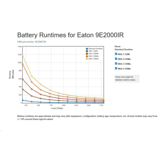 | TECHNICKÉ ÚDAJE PRODUKTU | SEKUNDÁRNÍ FREKVENCE - MAX. 60 Hz KŘIVKA VÝSTUPNÍHO NAPĚTÍ Sinusový výstup MAXIMÁLNÍ POČET BATERIOVÝCH MODULŮ 4 VÝKON 1800 W VÝSTUPNÍ ÚČINÍK 0,9 PROVEDENÍ Rack ZKRESLENÍ NAPĚTÍ VÝSTUPU (LINEÁRNÍ ZÁTĚŽ) – MAX. 3 ZAHRNUJE SÍŤOVOU KARTU Ne ZAPOJENÍ VSTUPU C14 VSTUPNÍ NAPĚTÍ – MIN. 140 V VÝSTUPNÍ NAPĚTÍ – MAX. 240 V SEKUNDÁRNÍ FREKVENCE - MIN. 50 Hz KOMPATIBILITA SOFTWARU Software Eaton Intelligent Power Manager, Eaton Intelligent Power Protector VÝMĚNA BATERIE Vyměnitelné baterie TYP BATERIE Bezúdržbový, olověný ÚČINNOST 91 ZVLÁŠTNÍ CHARAKTERISTIKY Topologie dvojité konverze Neustále monitoruje kvalitu vstupního napájení a reguluje napětí a frekvenci na výstupu Poskytuje větší činný výkon (ve wattech) pro lepší ochranu zařízení s účiníkem 0,9 Interní bypass zajišťuje kontinuitu provozu v případě poruchy UPS LCD displej Dlouhá doba zálohy s až 4 volitelnými EBM |