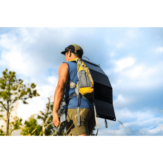 Základem 28W přenosného solárního panelu EcoFlow (typ-C) jsou pokročilé monokrystalické křemíkové solární články TOPcon s účinností 25 %. Panel je velmi skladný, vyniká velkou odolností a nízkými nároky na údržbu. Snadno se upevní i na batoh a disponuje výstupy USB-A a USB-C. I během túry tak může průběžně dobíjet mobil, fotoaparát nebo powerbanku.