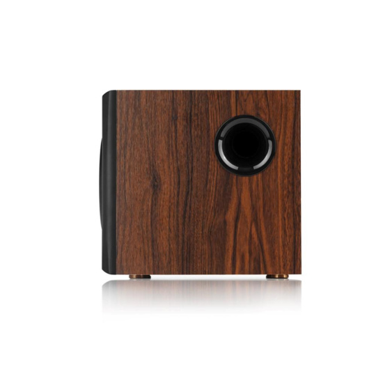 Kvalitní dřevěný vinyl vytváří skvělý zvukový projev a vzhled. Překližka MDF minimalizuje rezonanci boxu a poskytuje křišťálově čistý zvuk. Osazený 4" středovými reproduktory, rovinnými membránovými výškovými reproduktory třídy Hi-Fi a 8" subwooferovým reproduktorem pro dosažení mohutného dunivého zvuku.