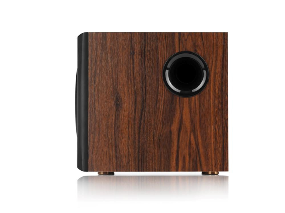 Kvalitní dřevěný vinyl vytváří skvělý zvukový projev a vzhled. Překližka MDF minimalizuje rezonanci boxu a poskytuje křišťálově čistý zvuk. Osazený 4" středovými reproduktory, rovinnými membránovými výškovými reproduktory třídy Hi-Fi a 8" subwooferovým reproduktorem pro dosažení mohutného dunivého zvuku.