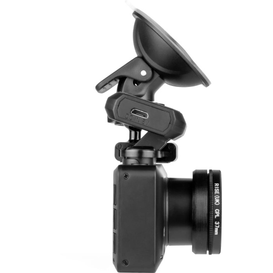 Přísavný držák kamery je koncipován tak, aby bylo možno kameru pohodlně umístit i na kolmé sklo, například autobusů nebo nákladních vozidel. Díky kloubu držáku je možno kameru nastavit ve třech osách pro přesné zacílení záběru. Proto je možné kameru umístit i mimo pozici za zpětným zrcátkem, kde by pro řidiče nebyl dostupný display zobrazující rychlost z GPS a další údaje.