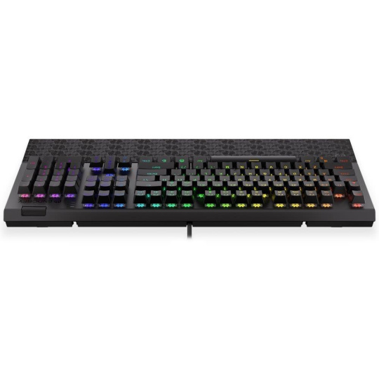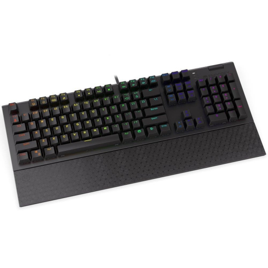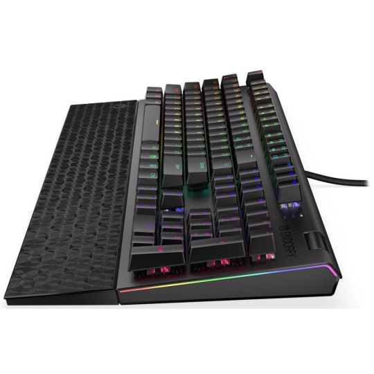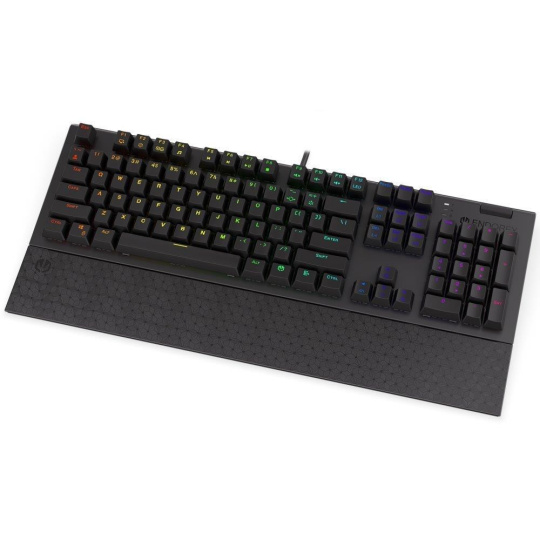Plnohodnotná mechanická klávesnice pro každého vášnivého hráče. Díky spínačům Kailh Blue nabízí výbornou odezvu a výdrž přes 50 milionů stisků. Konstrukce z hliníku vykazuje jen tu nejvyšší možnou odolnost a stabilitu. Špičkové pohodlí zajistí odnímatelná opěrka dlaní. Klávesy jsou RGB podsvícené a nabízí možnost vlastního nastavení. Navíc jsou také plně programovatelné, díky tomu lze klávesnici individualizovat přesně podle potřeb hráče a hrané hry. Klávesnice disponuje také otočným ovladačem hlasitosti. Samozřejmě nechybí ani funkce Anti-Ghosting a N-Key rollover. Připojení je realizováno skrze odnímatelný USB kabel.