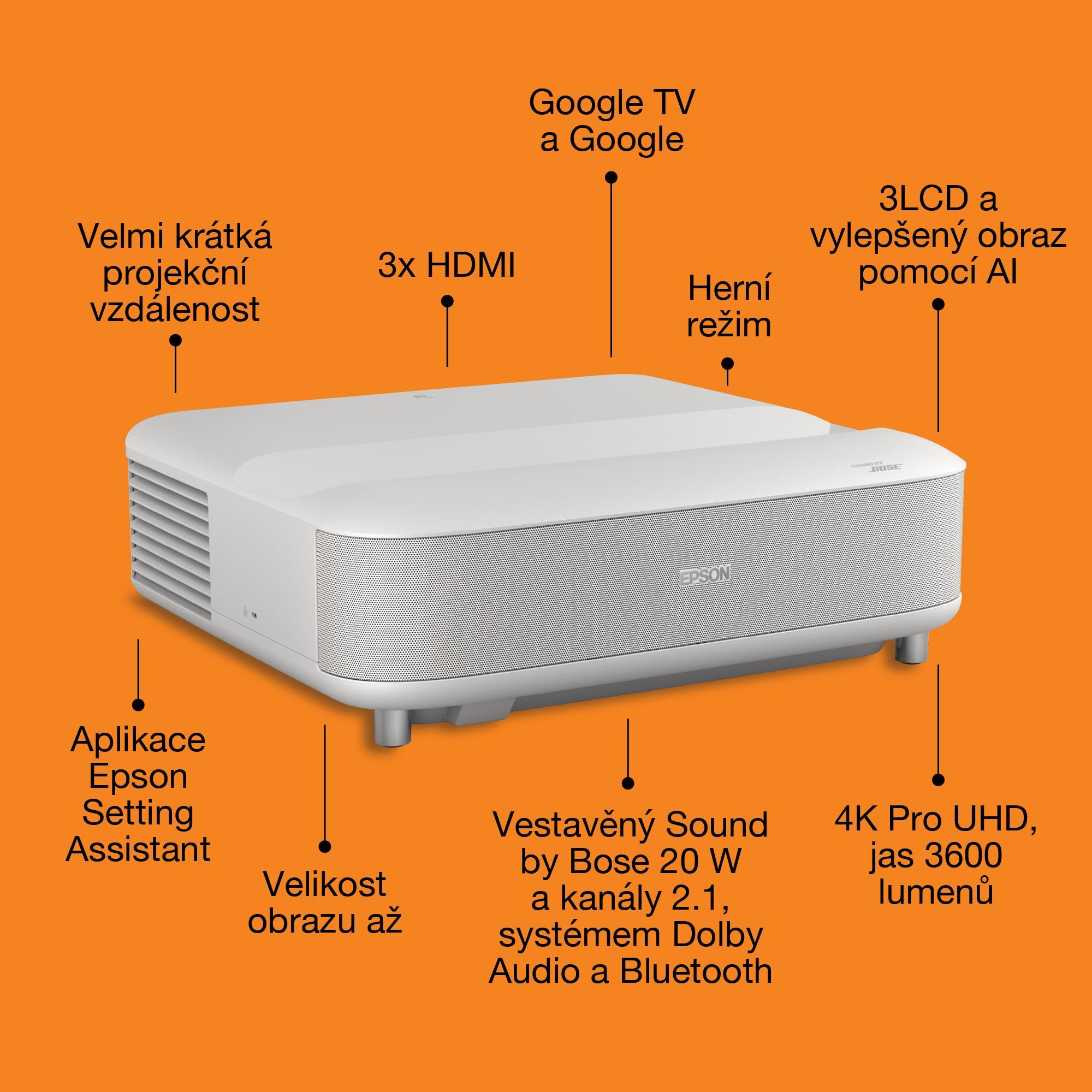 Epson Lifestudio Grand – EH-LS670W diamantová bílá, 4K PRO-UHD, 3600lm, HDMI, USB, Google TV, 240Hz