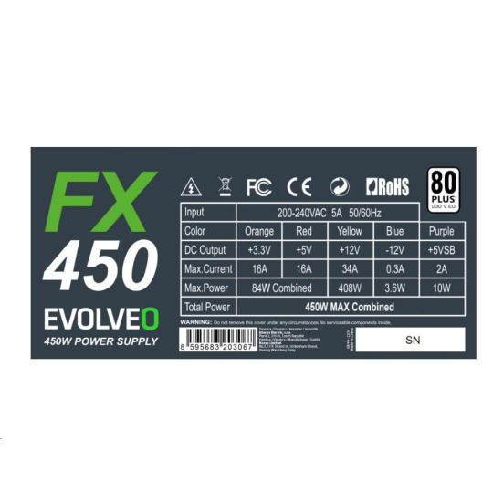 EVOLVEO FX 450, zdroj 450W ATX, 14cm, tichý, 80+, bulk, záruka 3 roky