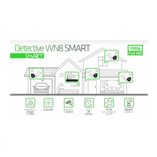 8 kanálový kamerový systém EVOLVEO Detective WN8 SMART je ideální řešení pro monitorování a bezpečnost vašeho domu, kanceláří, skladu nebo firmy. Systém můžete využít doopravdy všude díky bezdrátové technologii pracující na frekvenci 2,4GHz a vlastním privátním protokolu. Dosah kamer je v zástavbě 15-25m od hlavní jednotky. V otevřeném prostranství až 50m - mezi anténou hlavní jednotky a kamerou nesmí být žádná překážka a nesmí být v okolí žádné elektronické zarušení. Kamery jsou přednastavené a předem spárované s NVR jednotkou. Jeho čistý obraz jak ve dne tak v noci využijete pro ochranu a monitorování nejen vaše rodinného domku nebo firmy, ale i pro dozor nad prodejnou nebo pro dohled nad veřejným prostranstvím. Veškeré události se nahrávají přímo na pevný disk, který vložíte do hlavní jednotky, a tak máte vaše data plně pod kontrolou. K záznamu máte přístup pomocí mobilní aplikace pro iOS a Android, nebo iCMS programu pro OS WIndows. Záznam lze také prohlížet na monitoru připojeném přímo do NVR jednotky pomocí HDMI nebo VGA kabelu.