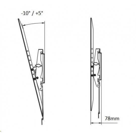 Sklopný držák na Tv 55" až 90" a podporou VESA standard 200x200 až 800x600, nosnost 90kg LCD držák Tv sklopný Fiber Mounts D90 Nová generace špičkových sklopných držáků, u kterých je dbáno na nejvyšší kvalitu, absolutní bezpečnost a funkčnost. Držáky umožní náklon obrazovky v rozmezí +5° až -10°, náklon je možné samozřejmě zajistit v požadované poloze. Držák podoporuje standartizované zavěšení obrazovek, VESA standard 200x200 až 800x600. Bezpečnost je zajištěna automatickým systémem dvou západek, které zajistí obrazovku proti vysazení nebo náhodnému pádu ihned po usazení na držák. Uvolnění je pak možné pomocí dvou táhel, které uschováte za obrazovkou. Bezpečnost zvyšuje i kvalitní materiál a robustní ocelová konstrukce. Nosnost držáku je certifikována na maximální zatížení až 90kg. Vzdálenost obrazovky od stěny je 78mm. Dodáváme v černém provedení. Na držák je poskytována záruka 10 let. Technické údaje: maximální zatížení 90kg na obrazovky s úhlopříčkou 55" až 90" podpora VESA standardů 200x200 až 800x600 náklon obrazovky nahoru až +5° náklon obrazovky dolů až -10° zajištění obrazovky v požadovaném úhlu sklonu vzdálenost Tv od stěny 78mm automatický systém zajištění obrazovky proti vysazení a náhodnému pádu uvolnění pomocí 2 táhel, která jsou uschována za obrazovkou kvalitní bezpečná konstrukce robustní materiál TOP kvalita, profesionální zpracování, 100% funkčnost barva černá záruka 10 let Držák podporuje VESA standardy: VESA 200x200 VESA 300x200 a 200x300 VESA 300x300 VESA 400x200 a 200x400 VESA 400x300 a 300x400 VESA 400x400 VESA 600x400 a 400x600 VESA 800x400 VESA 800x600.