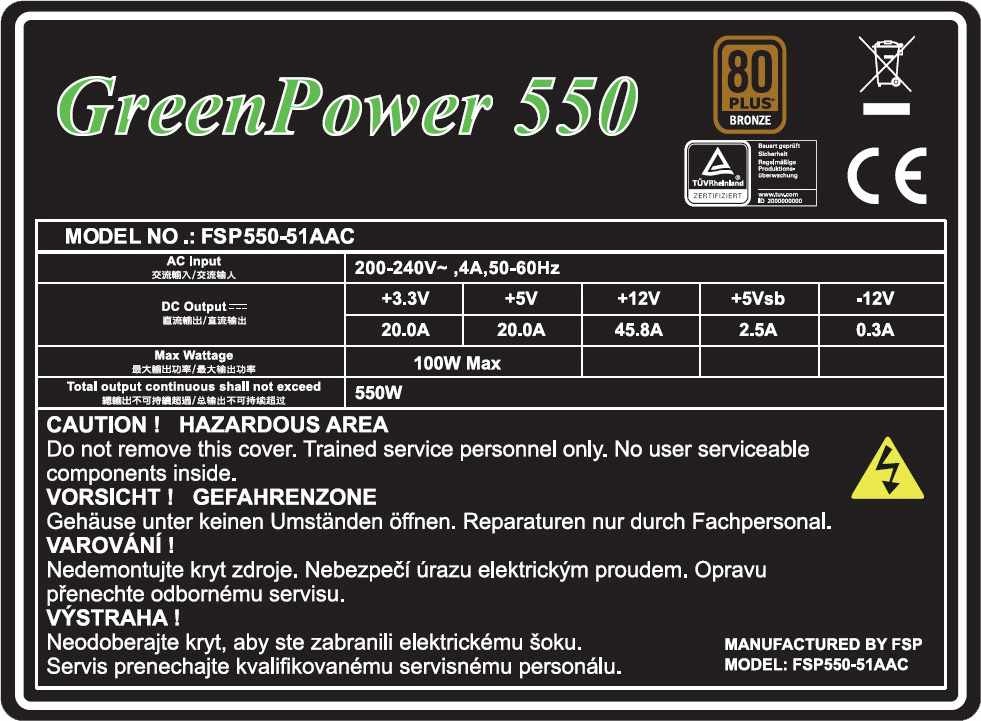 Fortron zdroj 550W GreenPower 550-51AAC,80+ Bronze