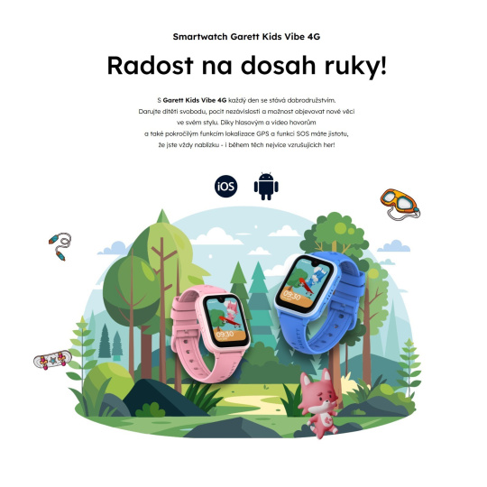 S Garett Kids Vibe AI 4G se každý den stává dobrodružstvím. Darujte dítěti svobodu, pocit nezávislosti a možnost objevovat nové věci vlastním stylem. Díky hlasovým a video hovorům, pokročilým funkcím lokalizace GPS a funkci SOS, máte jistotu, že jste vždy nablízku - i během těch nejzábavnějších her!