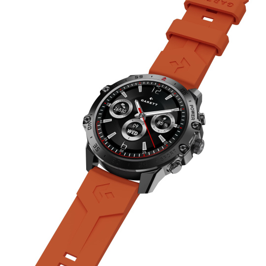 - Sada obsahuje: GARETT smartwatch, přídavný silikonový pásek, nabíjecí kabel, QSG návod