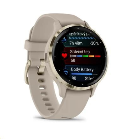 Garmin Venu® 3S, Nerezová luneta Soft Gold, pouzdro French Gray, silikonový řemínek