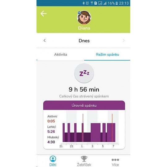 Fitness náramek pro děti s motivy kreslených postaviček od Disney a komiksových akčních hrdinů. * motivuje děti k pohybu, plnění úkolů a soutěžení * odměny za plnění domácích povinností * barevný displej, skvěle viditelný a čitelný i na přímém slunci * odolné a pohodlné řemínky ve dvou velikostech * aplikace pro mobilní telefony zdarma * počítá nachozené kroky za den a minuty strávené intenzivním pohybem * upozorňuje na neaktivitu a vybízí k pohybu (např. při dlouhodobém sezení) * upozornění (alarmy) na naplánovaný čas plnění úkolů (zvukem, obrázkem a textem) * bez nutnosti nabíjení, baterie s dobou provozu více jak 1 rok * vodotěsné i pro plavání.