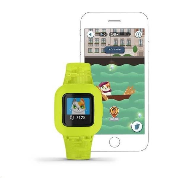 Vaše děti mohou prozkoumávat svůj svět s náramkem vívofit junior 3. Tento dětský odolný tracker s barevným displejem a několika možnostmi zobrazení ciferníku, dokáže fungovat až 1 rok na uživatelsky vyměnitelnou baterii. Má několik různých funkcí, které ocení jak děti, tak rodiče. Dětem ukazuje, jak jsou během celého dne pohybově aktivní, tzn. počítajá, kolik kroků děti za den nachodí a kolik minut stráví intenzivním zdravým pohybem. Při dlouhodobější neaktivitě (např. při delším sezení u počítače nebo televize) je upozorní s výzvou k pohybu. Zároveň jde o užitečný nástroj pro rodiče, kterým mohou zadávat svým dětem různé domácí úkoly a povinnosti a motivovat je k jejich plnění prostřednictvím vybraných odměn. Na úkoly je možné nastavit alarmy (budíčky) a náramek pak zvukovým signálem a zvoleným obrázkem i textem dětem sdělí, že je např. čas na psaní domácích úkolů do školy nebo si jít vyčistit zuby a spát. Za každý splněný úkol děti dostanou určitý počet virtuálních penízků - zlatých mincí, které si po našetření dostatečného množství mohou proměnit ve vybranou odměnu. A pro trochu duševní pohody rodičů se dá rychle podívat na telefonní číslo nouzového kontaktu přímo na displeji hodinek.
