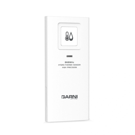 Sedmikanálové bezdrátové čidlo GARNI 055H 2GEN pro měření teploty a relativní vlhkosti, určeno pro Wi-Fi meteorologickou stanici GARNI 3015 Arcus, GARNI 3015 Arcus 2GEN, GARNI 2055 Arcus, GARNI 2055 Arcus 2GEN, GARNI 2040 Arcus, GARNI 2040 Arcus 2GEN, GARNI 1085 Arcus, GARNI 1025 Arcus, GARNI 1025 Arcus 2GEN, GARNI 975, GARNI 935PC, GARNI 925TGARNI 2060 Arcus, GARNI 3075 Arcus, hobby meteostanici GARNI 750, chytrý digitální teploměr s vlhkoměrem GARNI 419T, WiFi meteo bránu GARNI GTway Plus