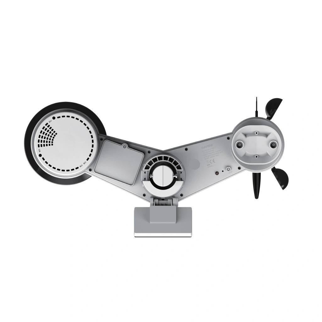 Integrované bezdrátové čidlo 7-v-1 GARNI 1NG měří vnější teplotu a relativní vlhkost, rychlost a směr větru, dešťové srážky, UV index a sluneční záření, a data jsou odesílána do hlavní jednotky až do vzdálenosti 150 m (v otevřeném prostoru).