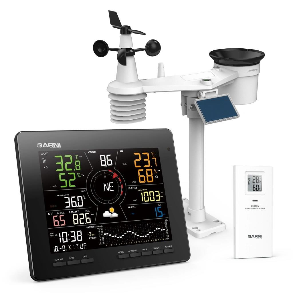 Meteorologická stanice s Wi-Fi, 24hodinovou / 7denní předpovědí a profesionálním integrovaným bezdrátovým čidlem 7-v-1 se solárním panelem a vestavěným kapacitorem, model GARNI 2060 Arcus, shromažďuje přesné a podrobné údaje o počasí, které jsou pak v reálném čase odesílány pomocí vestavěného Wi-Fi modulu a místní sítě Wi-Fi na meteorologické servery, jako je ProWeatherLive, Weather Underground, Weathercloud nebo vlastní server uživatele (doporučeno pouze pro zkušené uživatele)..... více