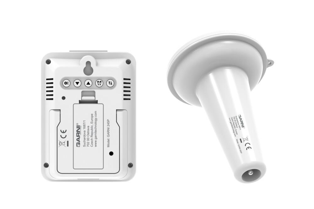 Hlavní jednotka digitálního teploměru GARNI 245P je kompatibilní s bezdrátovými čidly GARNI 063H (na displeji hlavní jednotky bude však zobrazena pouze teplota). Digitální teploměr s bazénovým čidlem GARNI 245P lze tedy použít spolu s meteorologickými stanicemi řady Precise.