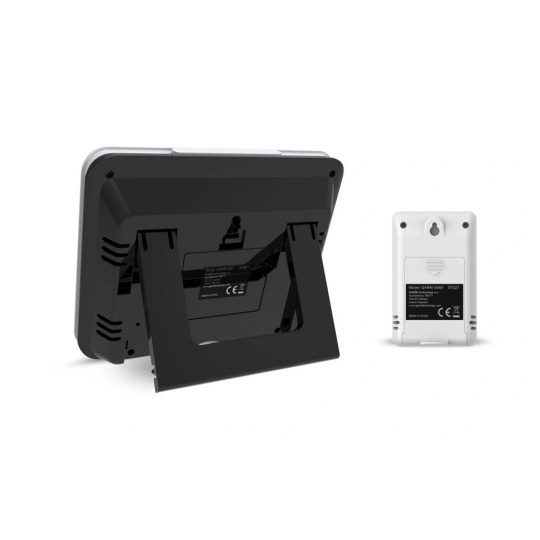 Meteorologická stanice s inverzním barevným displejem s časem a datem řízenými rádiovým signálem DCF-77, budíkem, měřením vnitřní teploty, relativní vlhkosti a absolutního barometrického tlaku, bezdrátovým čidlem pro měření vnější teploty a relativní vlhkosti.