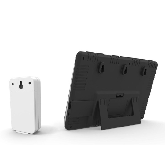 Třetí generace meteorologické stanice se špičkovým inverzním barevným VA displejem s časem řízeným rádiovým signálem DCF-77, budíkem, měřením vnitřní teploty, relativní vlhkosti a absolutního barometrického tlaku, bezdrátovým čidlem pro měření vnější teploty a relativní vlhkosti a USB portem pro napájení externích zařízení