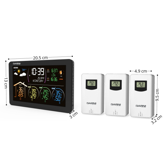- 3 bezdrátová čidla GARNI 030H s displejem jsou součástí balení