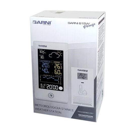 Přesná meteorologická stanice s inverzním barevným VA displejem s časem a datem řízenými rádiovým signálem DCF-77, budíkem, měřením vnitřní teploty, relativní vlhkosti, barometrického tlaku a bezdrátovým čidlem pro měření vnější teploty a relativní vlhkosti. Pro dosažení vysoké přesnosti měření teploty a relativní vlhkosti jsou použita špičková čidla švýcarské značky SENSIRION