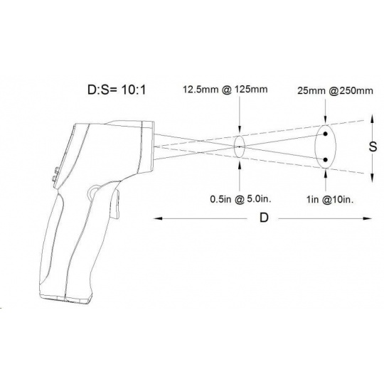 Rozsah měření od -35°C do +800°C, optika 10:1, emisivita nastavitelná od 0,1 do 1,0, duální laserové ukazovátko pro snadnější zaměření, možnost osvětlení displeje, automatické vypínání přístroje po 7 s.... více
