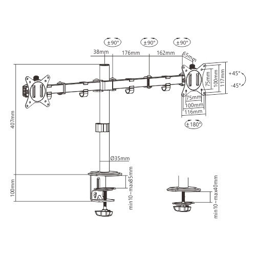 - Stolní držák monitoru s dvojitým ramenem monitoru